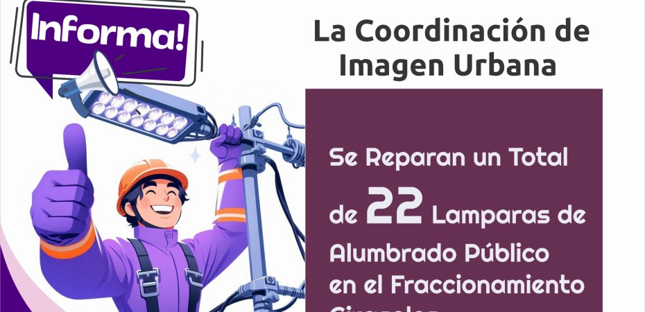 Otro de los aspectos que se le está dando prioridad, es la imagen urbana y el alumbrado público en las calles y fraccionamientos, dando resultados a menos de una semana; reportando más de 20 lámparas reparadas.