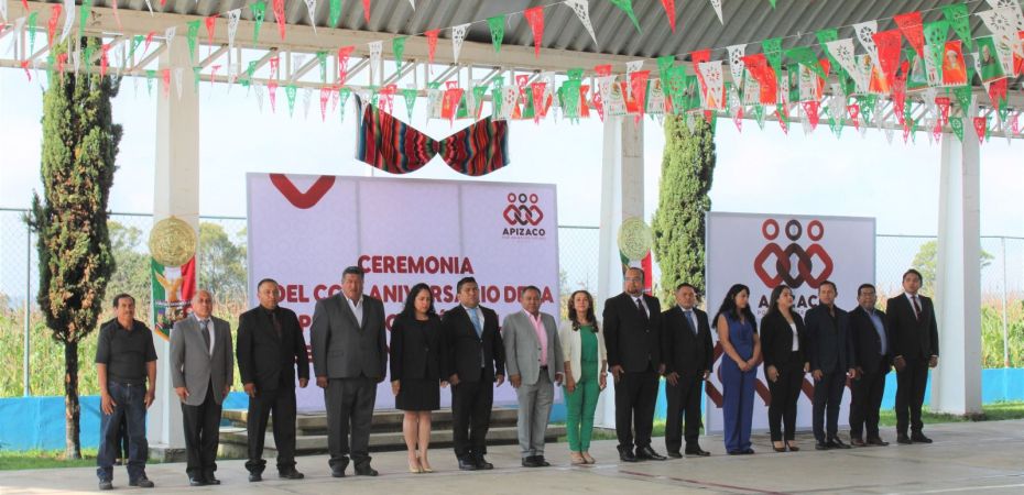 El presidente de Apizaco, Javier Rivera Bonilla junto con el H. Cabildo, Anabel Monter Ríos; Presidenta Honorífica del DIF Municipal, docentes y personal administrativo del municipio, encabezaron la ceremonia del 211 Aniversario de la Promulgación de Los Sentimientos de la Nación.