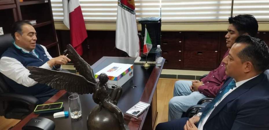 El Mtro. Lenin Calva Pérez, rector de la Universidad Tecnológica de Tlaxcala (UTT), sostuvo una reunión inspiradora con dos egresados de la Licenciatura en Innovación de Negocios y Mercadotecnia: Ricardo Hernández Xochitemol, fundador de DINUS Siempre de moda, y Marco Carrillo Pineda, Director General del Instituto de Certificación, Capacitación y Desarrollo MC.