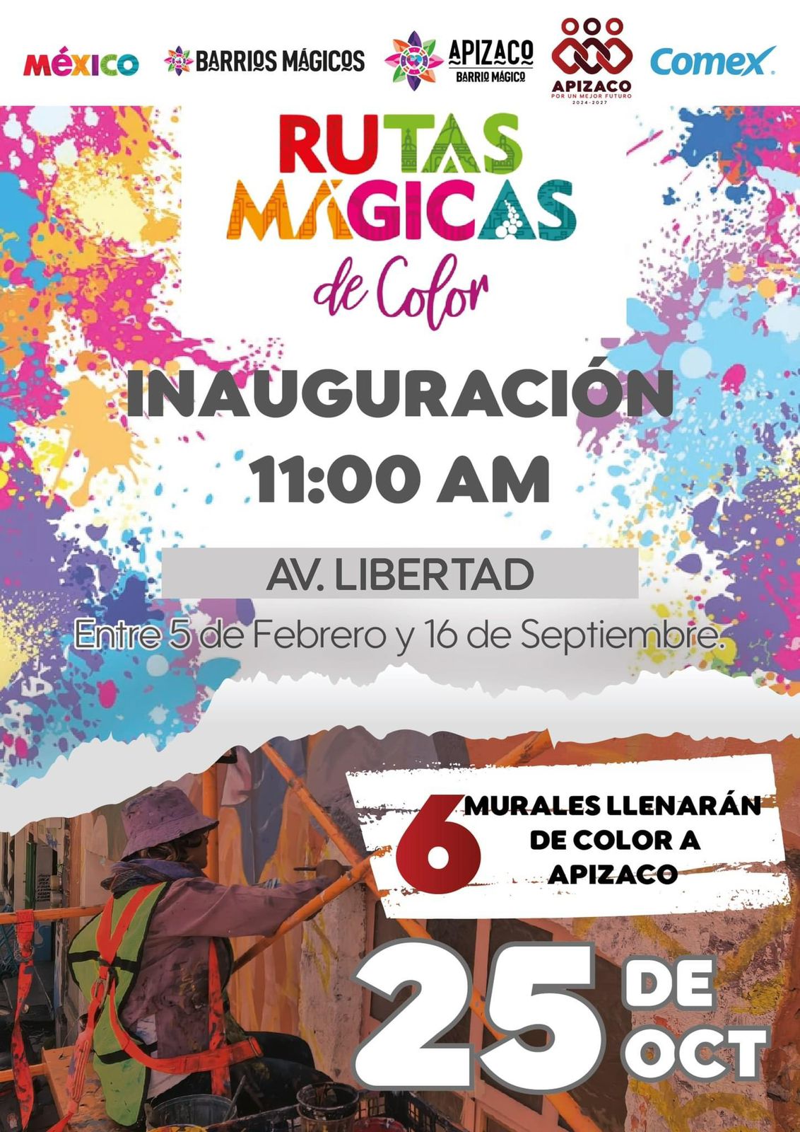 “Rutas Mágicas de Color murales 2024” será presentado el día viernes 25 de octubre a las 11:00 am en Av. Libertad entre 5 de febrero y 16 de septiembre de Apizaco, Tlaxcala.