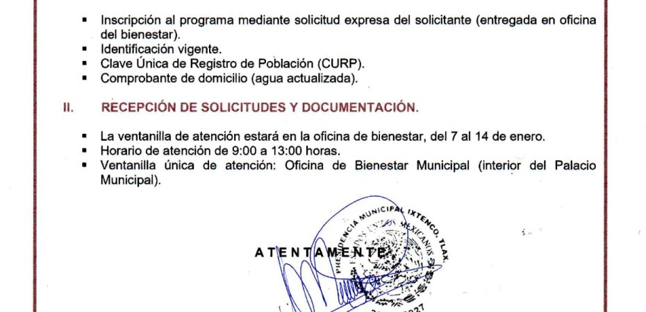 - Ubicación: Oficina de Bienestar Municipal (interior del Palacio Municipal).