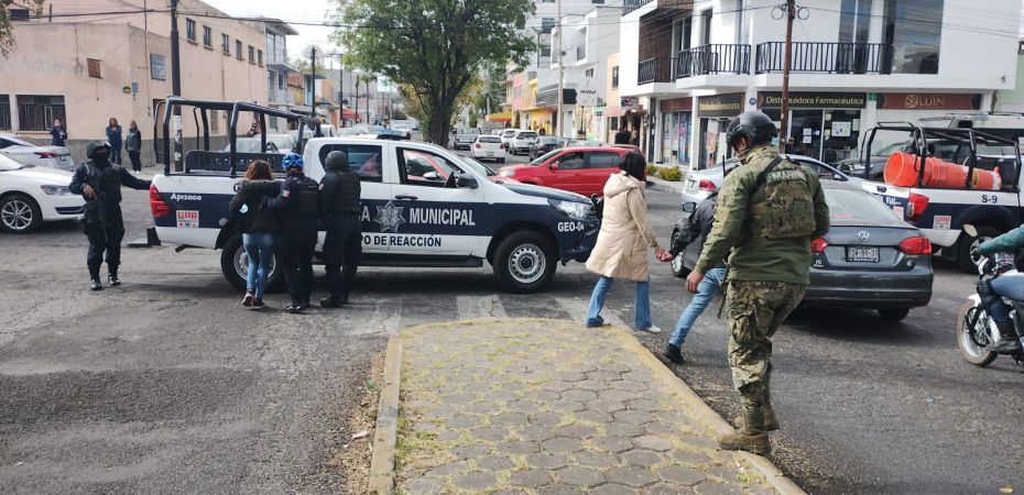 La inmediata respuesta de la Policía Municipal de Apizaco con apoyo de la Marina, logró la detención de dos masculinos y una femenina, quienes fueron sorprendidos portando armas de fuego.