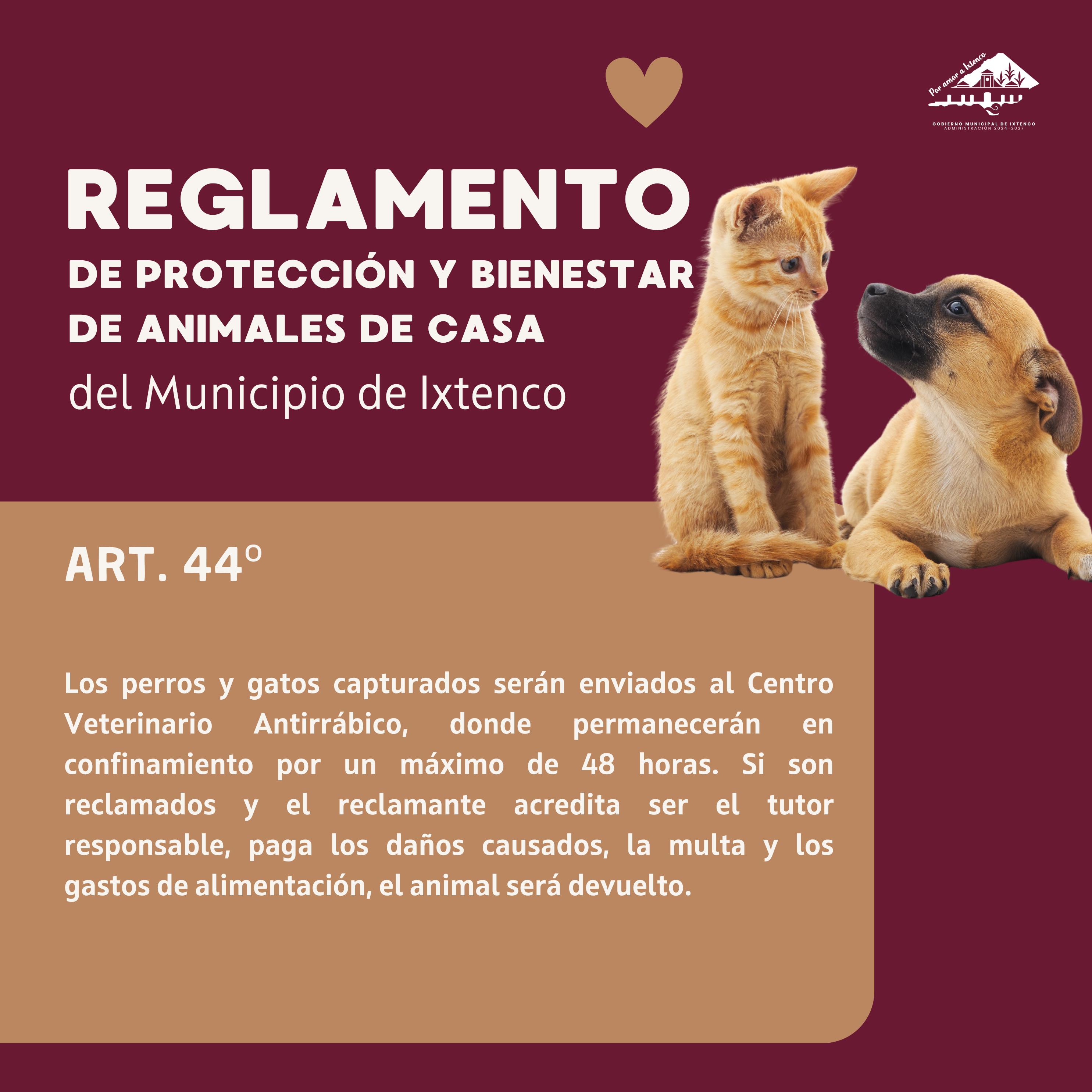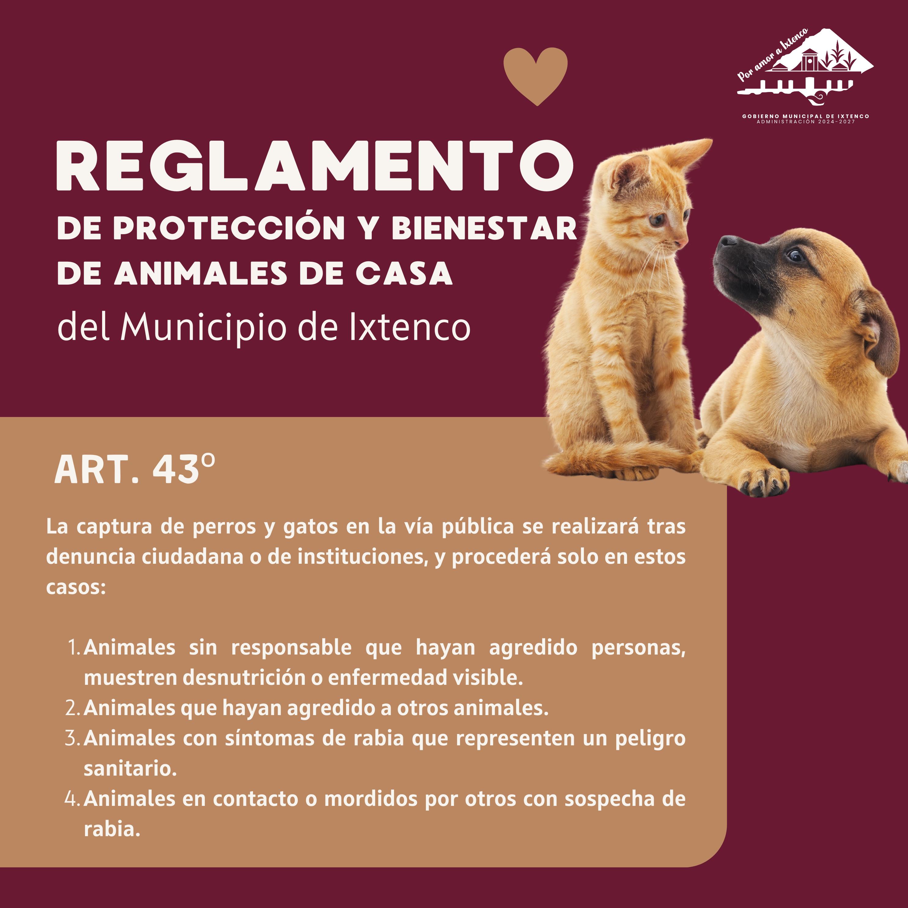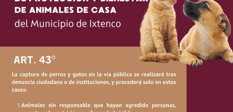 El reglamento tiene como objetivo establecer acciones concretas para garantizar el bienestar animal y controlar la población desmedida de perros y gatos en el municipio. Siempre promoviendo el cuidado responsable de todas las especies dentro de la jurisdicción de Ixtenco, será la Coordinación de Protección Civil la encargada de supervisar su cumplimiento. Además, este reglamento ya ha sido publicado en el Periódico Oficial del Estado y será ampliamente difundido a través de las redes sociales del Ayuntamiento.