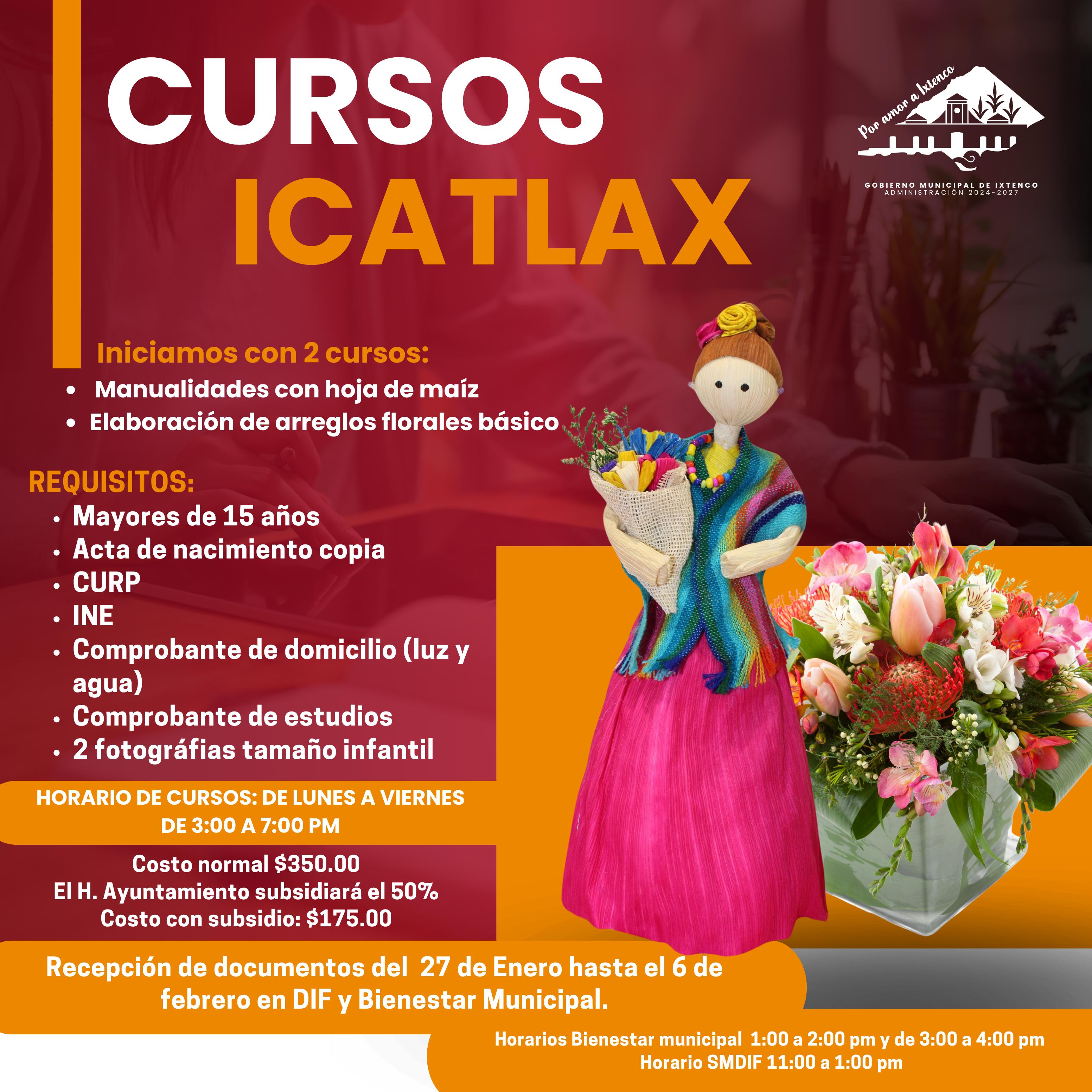 El Gobierno Municipal de Ixtenco, que encabeza Aline Lazo Caballero, en colaboración con el Instituto de Capacitación para el Trabajo del Estado de Tlaxcala (ICATLAX), anuncia el inicio de nuevos cursos para el autoempleo, con el objetivo de brindar herramientas de capacitación a la ciudadanía.