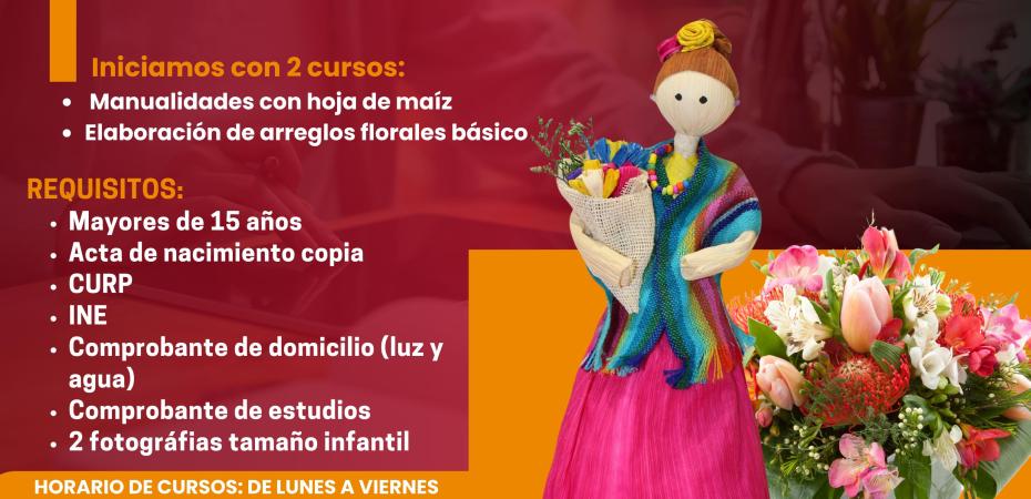 A través de esta iniciativa, los vecinos de Ixtenco podrán participar en dos cursos impartidos por ICATLAX: manualidades con hoja de maíz y la Elaboración de arreglos florales básicos.