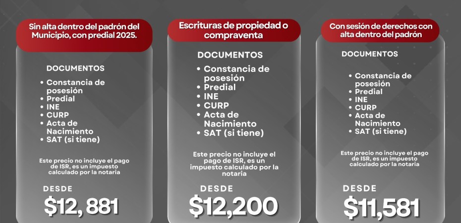 Este beneficio representa una oportunidad única para quienes aún no cuentan con la escritura de su hogar o terreno, permitiéndoles regularizar su propiedad a un costo reducido y fortalecer su patrimonio con plena seguridad jurídica.