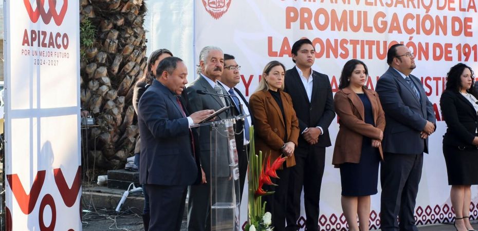 Durante la mañana de este miércoles, el alcalde municipal Javier Rivera Bonilla en compañía de la síndico, las y los regidores, y presidentes de comunidad que integran el Cabildo del H. Ayuntamiento de Apizaco, así como del cronista municipal Mario Bojalil Bojalil, y la Junta Patriótica, presidió la conmemoración del 108 aniversario de la Promulgación de la Constitución Política.