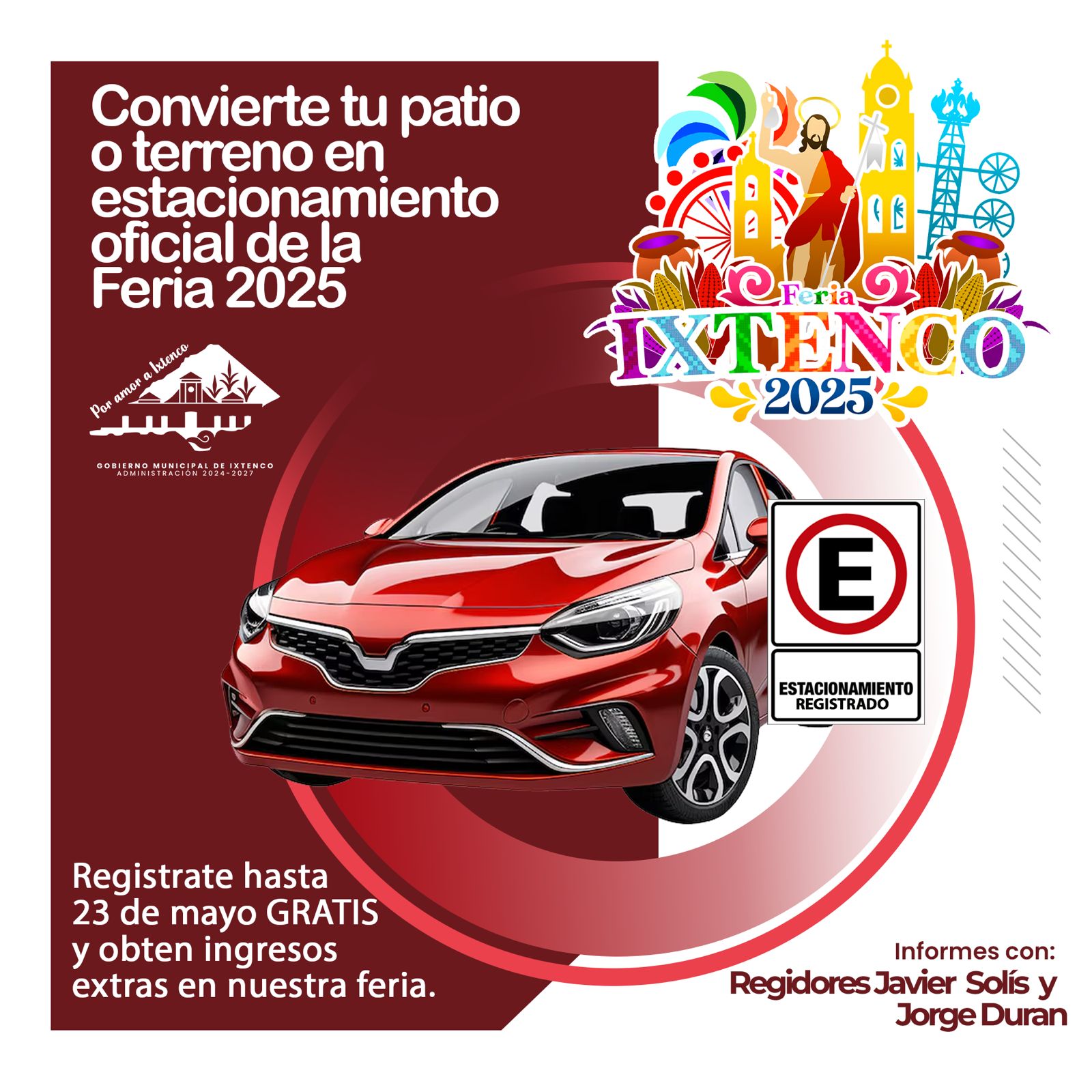 Con el objetivo de ofrecer mayor seguridad y orden durante la próxima Feria Patronal en honor a San Juan, el Gobierno Municipal de Ixtenco, encabezado por Aline Lazo Caballero, lanzó una convocatoria para el registro gratuito de estacionamientos particulares.