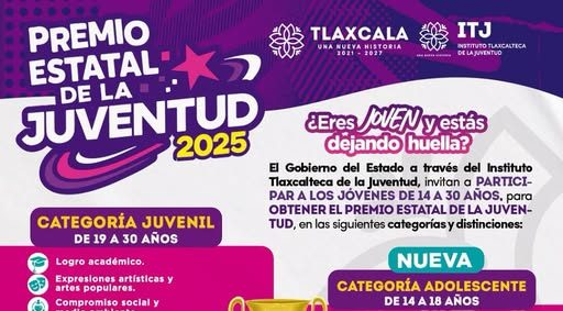 Los interesados pueden consultar las bases completas en la convocatoria oficial en este enlace y realizar su registro a través del formulario digital disponible aquí. El ITJ y los municipios participantes exhortan a la juventud tlaxcalteca a no dejar pasar esta oportunidad única de ser reconocida por su talento y compromiso.