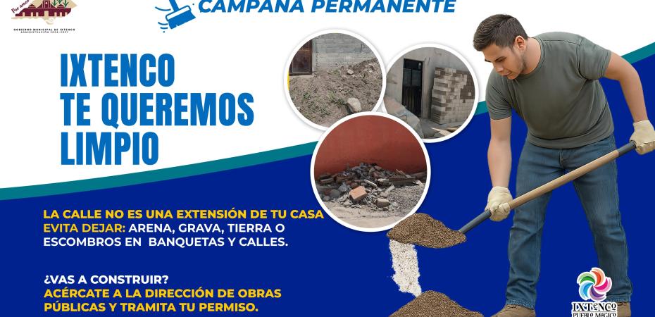 Parte fundamental de esta campaña es evitar la obstrucción de calles y banquetas con materiales como arena, grava, tierra o escombros. El respeto al espacio público es clave para garantizar la seguridad de peatones, vehículos y, sobre todo, para conservar el entorno digno que caracteriza a Ixtenco.