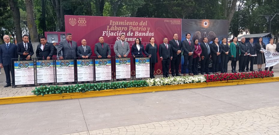 El municipio de Apizaco celebró el inicio del mes patrio con un homenaje de Izamiento del Lábaro Patrio y Fijación de Bandos Solemnes. El evento se llevó a cabo en la plaza cívica del municipio y contó con la presencia del presidente municipal, Javier Rivera Bonilla.