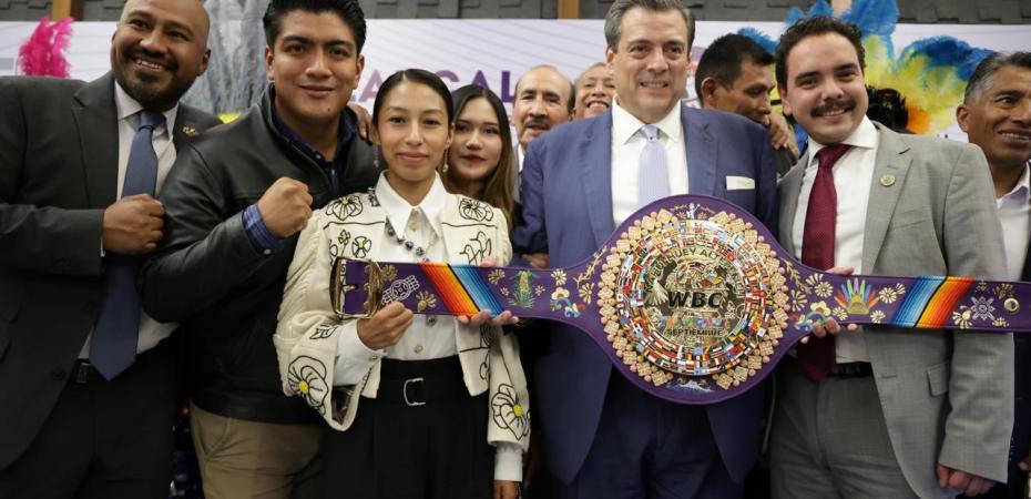 El Consejo Mundial de Boxeo (WBC) presentó el cinturón conmemorativo “Nahui Huey Altepemeh”, pieza que será disputada el próximo 13 de septiembre en la pelea entre Saúl “Canelo” Álvarez y Terence Crawford, que refleja el talento de artesanos y artistas tlaxcaltecas y enaltece la identidad cultural del estado, al colocar a Tlaxcala en el escaparate internacional del boxeo, proyectando su arte y tradición a millones de espectadores en todo el mundo.