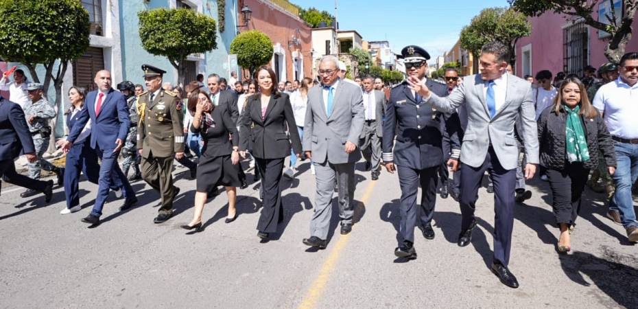 Luego se unió al presídium oficial, encabezado por la gobernadora, desde donde aplaudió el paso de contingentes escolares, militares y de seguridad pública, desfile en el que destacó la presencia de los elementos de la Dirección de Seguridad, Protección Ciudadana y Movilidad de la capital.