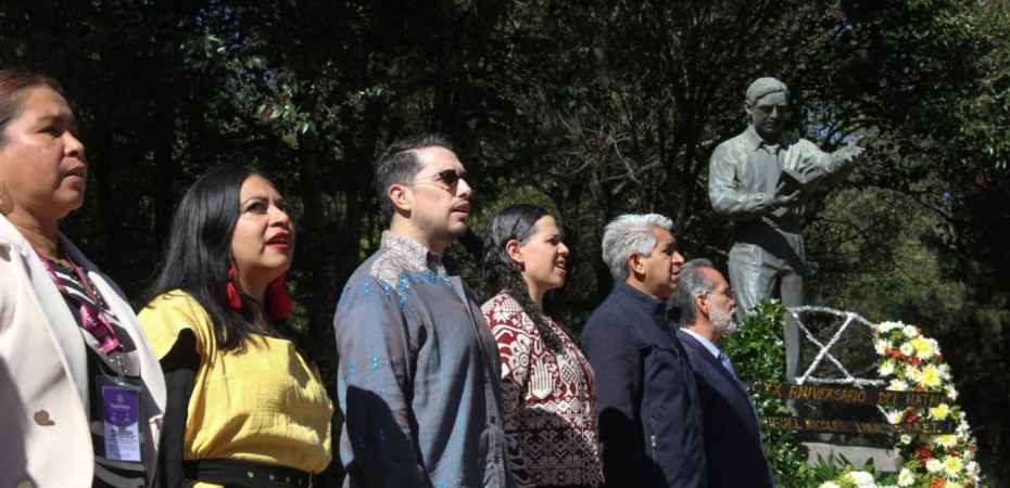 Como parte del homenaje, autoridades montaron una guardia de honor y colocaron una ofrenda floral en el monumento dedicado al autor tlaxcalteca, acompañadas por el toque militar de diana.