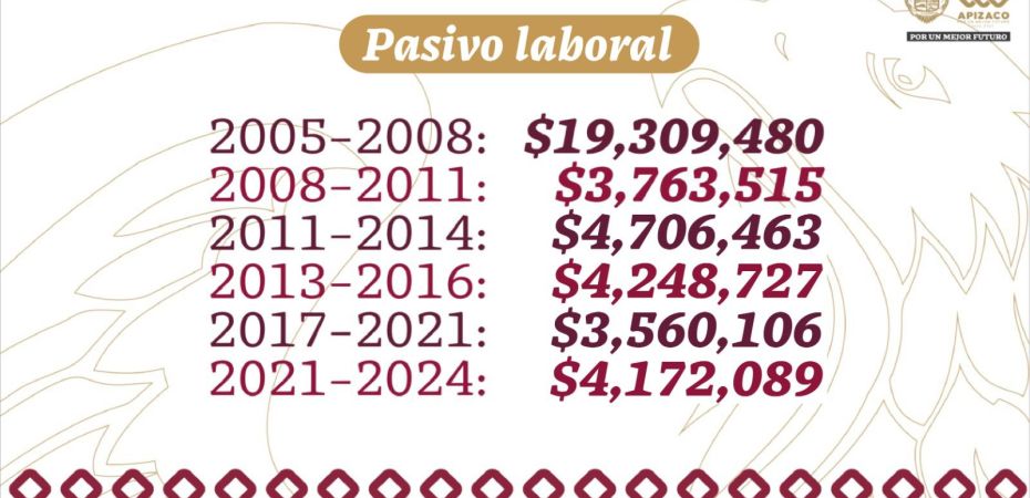 Durante su Primer Informe Ciudadano, el presidente municipal de Apizaco, Javier Rivera Bonilla, informó que su administración enfrenta con responsabilidad y transparencia una deuda histórica por laudos laborales que durante más de siete administraciones fue ignorada, minimizada y litigada con la intención de evadir su pago, reduciendo en un año casi el 30 por ciento de la suma heredada.