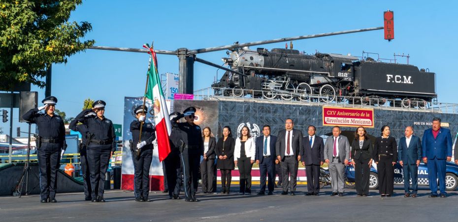 El presidente municipal de Apizaco, Javier Rivera Bonilla, encabezó la ceremonia cívica conmemorativa por el 115 Aniversario de la Revolución Mexicana, en la que destacó que este hecho representó un momento decisivo en la historia del país, al consolidar los principios de justicia, igualdad y derechos para todas y todos.
