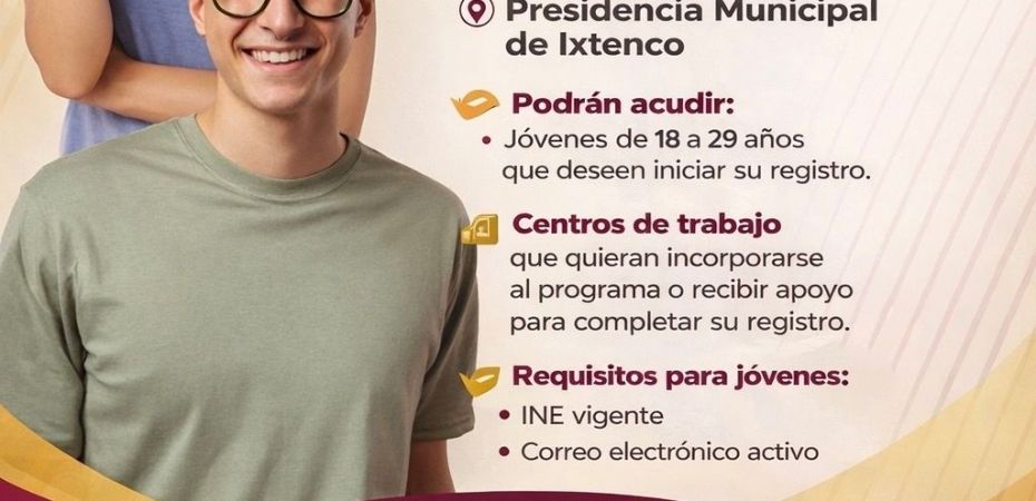 Esta visita se realizará por un solo día en Ixtenco, con el propósito de brindar apoyo directo a jóvenes de 18 a 29 años que deseen incorporarse al programa, así como a centros de trabajo interesados en iniciar o completar su registro para recibir aprendices.