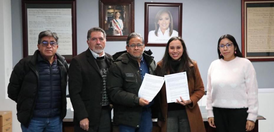 En el acto protocolario estuvieron presentes Ing. José Mariano Lima García, responsable de las funciones de la Dirección; Lic. José Luis Alejandro Cruz Zamora, responsable del área de Vinculación con el Sector Productivo; así como Ana Laura Moreno Escalona, coordinadora de Bienestar Municipal de Ixtenco, quien también signó este importante acuerdo.