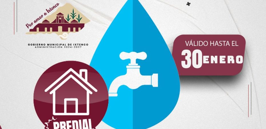 El Gobierno Municipal de Ixtenco, que encabeza la presidenta municipal Aline Lazo Caballero, informa a la ciudadanía que hasta el próximo 30 de enero se podrán realizar los pagos del servicio de agua potable y del impuesto predial 2026 con tarifas calculadas conforme a la UMA 2025.