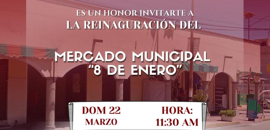 El Gobierno Municipal de Ixtenco informa que el próximo domingo 22 de marzo a las 11:30 horas se llevará a cabo la reinauguración del Mercado Municipal “8 de Enero”, un espacio que será reactivado para fortalecer la economía local y ofrecer a la ciudadanía instalaciones dignas, limpias y funcionales.