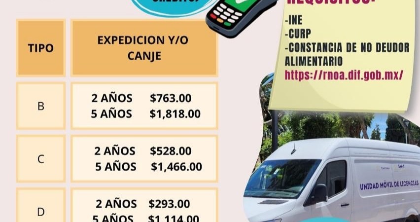 Durante los días 26 y 27 de marzo, en un horario de 9:00 a.m. a 2:00 p.m., la Unidad Móvil se instalará en la Presidencia Municipal, donde las y los ciudadanos podrán realizar la expedición y/o canje de licencias de conducir.