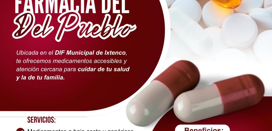 La Farmacia del Pueblo atiende de lunes a viernes en un horario de 9:00 a.m. a 4:00 p.m. en las instalaciones del DIF Municipal de Ixtenco.