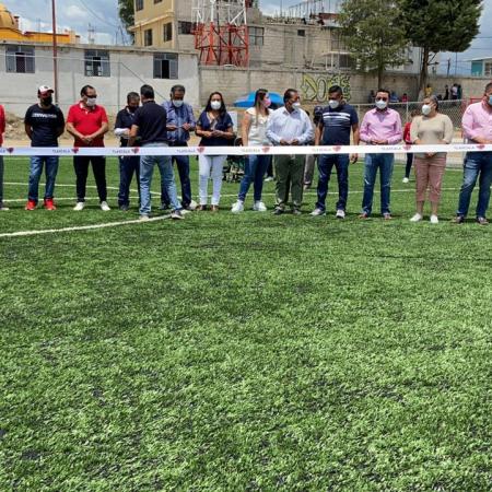 Supervisa alcalde de Ixtenco obra de construcción de la cancha empastada