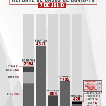 CONFIRMA SESA 56 CASOS POSITIVOS Y 4 FALLECIMIENTOS DE COVID-19 EN TLAXCALA.
