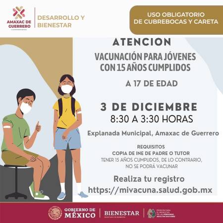 Amaxac convoca a jóvenes de 15 a 17 años a vacunarse contra COVID