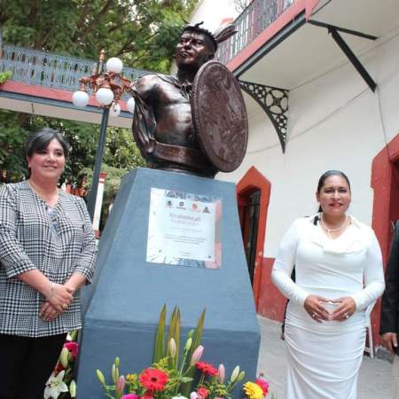 Reciben, la Ciudad de Tlaxcala y la comunidad de Tizatlán busto de Xicohténcatl Axayacatzin.