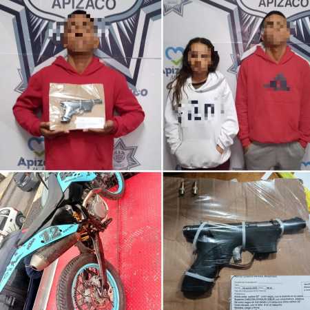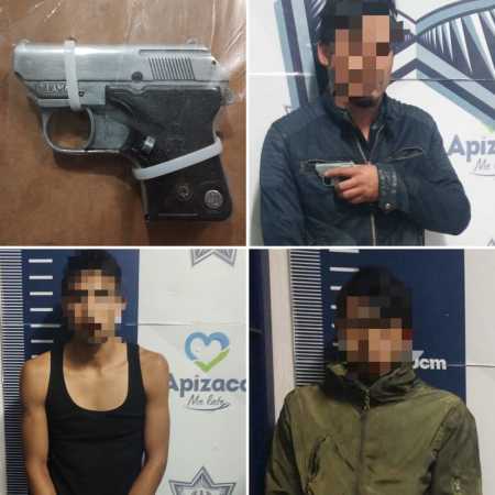 Policía de Apizaco pone a disposición del MP a tres sujetos en posesión de réplicas de armas de fuego