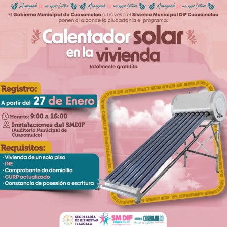 GOBIERNO MUNICIPAL DE CUAXOMULCO INICIA CON PROGRAMA DE CALENTADOR SOLAR EN VIVIENDA