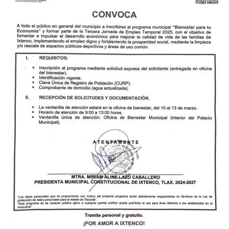 Emite Gobierno de Ixtenco, segunda convocatoria de empleo temporal.