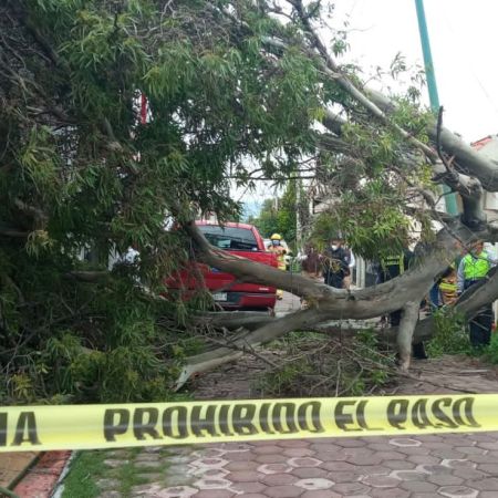 Atiende Servicios Públicos de la capital tlaxcalteca caída de árbol sobre una casa de la comunidad San Gabriel Cuauhtla