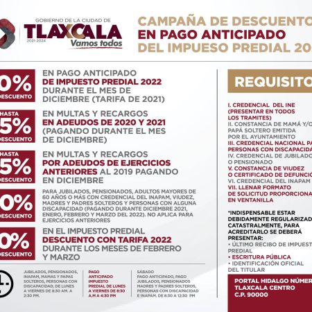 Ofrece Tlaxcala Capital hasta 75% de descuento a quienes anticipen pago de impuesto predial