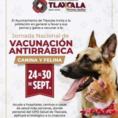 En Tlaxcala Capital se efectuará jornada de vacunación antirrábica canina y felina