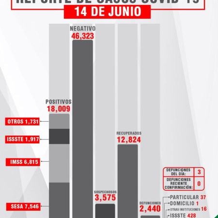 HASTA EL DÍA DE HOY LA SESA REPORTA MIL 678 MUERTOS POR COVID-19