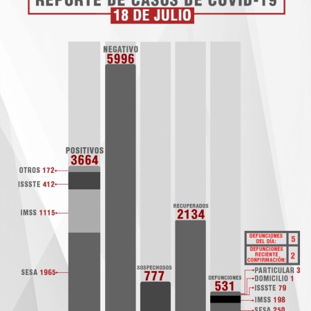 CONFIRMA SESA 38 PERSONAS RECUPERADAS, 83 CASOS POSITIVOS Y 5 FALLECIMIENTOS DE COVID-19 EN TLAXCALA.