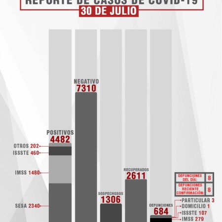 CONFIRMA SESA 36 PERSONAS RECUPERADAS, 30 CASOS POSITIVOS Y 7 FALLECIMIENTOS DE COVID-19 EN TLAXCALA.