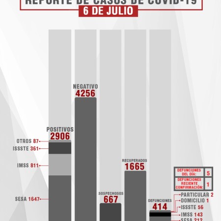 CONFIRMA SESA 80 CASOS POSITIVOS Y 5 FALLECIMIENTOS DE COVID-19 EN TLAXCALA.