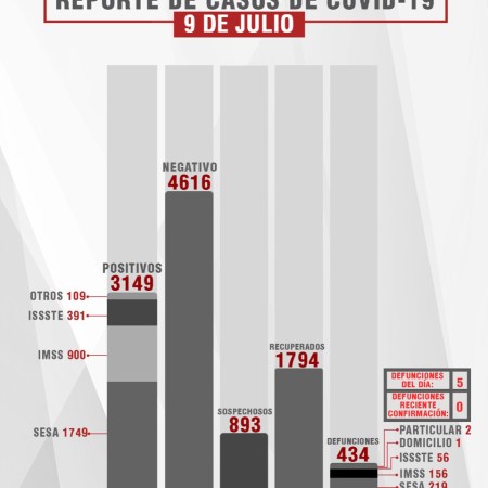 CONFIRMA SESA 69 PERSONAS RECUPERADAS Y 9 FALLECIMIENTOS DE COVID-19 EN TLAXCALA.