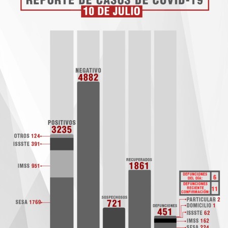 CONFIRMA SESA 45 PERSONAS RECUPERADAS Y 3 DEFUNCIONES DE COVID-19 EN TLAXCALA