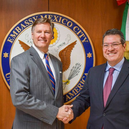 MARCO MENA SE REÚNE CON EMBAJADOR DE ESTADOS UNIDOS EN MÉXICO