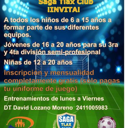 Futbol SAGA Tlax Club, abre convocatoria para visorias y entrenamiento de futbolistas.