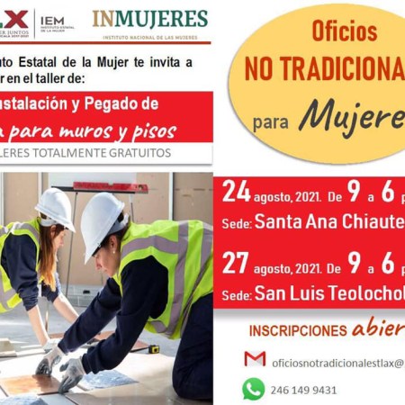 INVITA IEM A TLAXCALTECAS A PARTICIPAR EN TALLERES DE OFICIOS NO TRADICIONALES PARA MUJERES