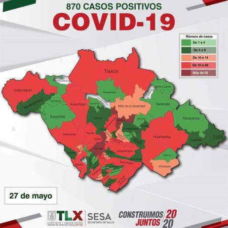 TLAXCALA REPORTA HASTA EL MOMENTO 870 CASOS DE COVID-19