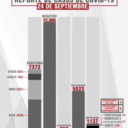 CONFIRMA SESA 24 CASOS POSITIVOS ESTE SÁBADO