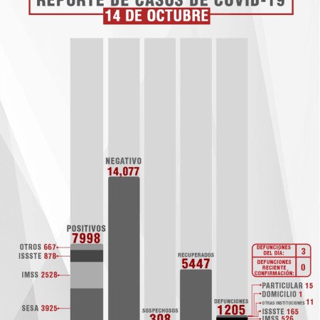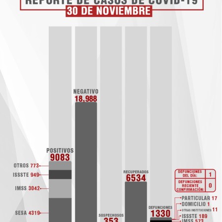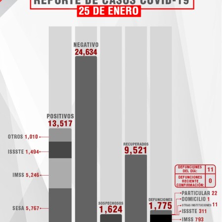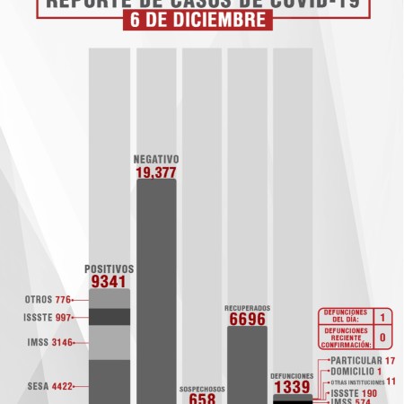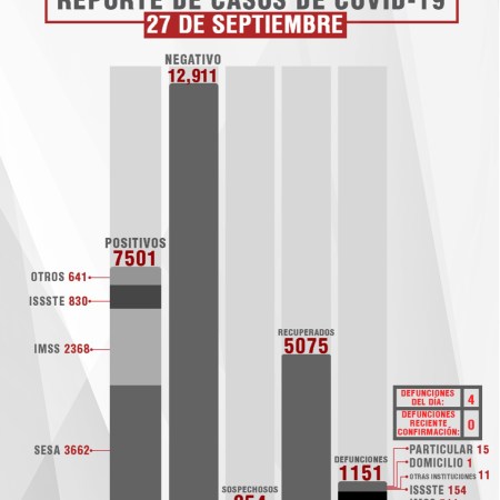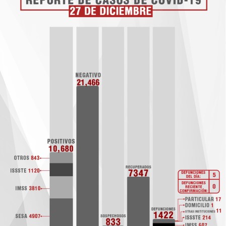 CONFIRMA SESA 27 CASOS MÁS Y SEIS FALLECIDOS