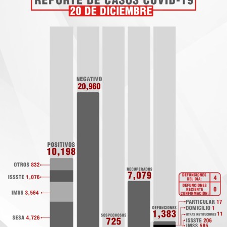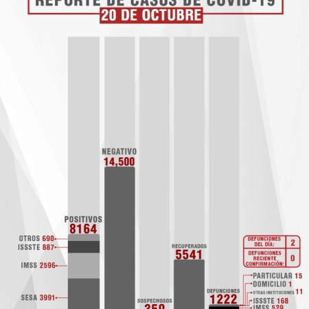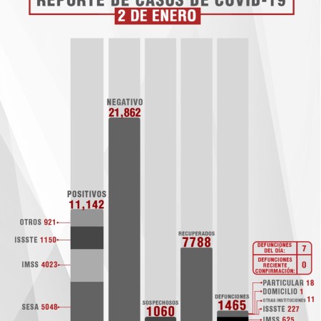 HASTA EL DÍA DE HOY LA SESA REPORTA MIL 678 MUERTOS POR COVID-19
