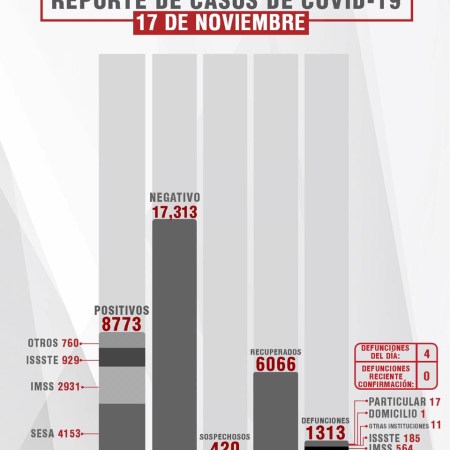 18 CASOS POSITIVOS EN TLAXCALA DE COVID-19 ESTE 17 DE NOVIEMBRE